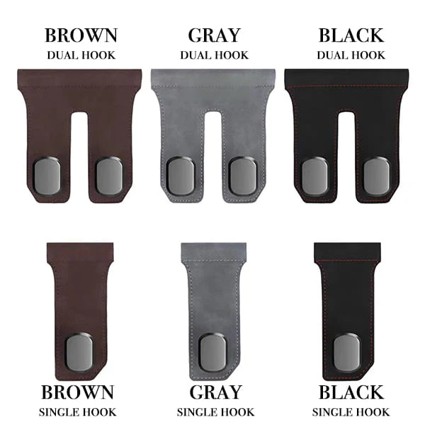 Made of high-quality, non-toxic suede fabric and metal alloy material with superior load-bearing performance. It offers exceptional durability and toughness that is built to withstand years of use without breaking, snapping, or showing signs of damage. This hang-smart car organizer hook features rounded edges that protect bags, straps, and other essentials from scratches. Available in black, gray, and brown in both dual- and single-hook styles, offering versatile options to perfectly match your car’s interior decor.